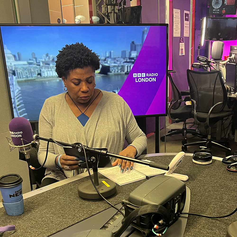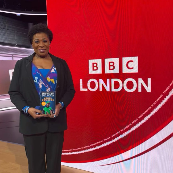 Brenda arrived early at BBC Broadcasting House to tell morning listeners about the work of the Jamal Edwards Self Belief Trust.